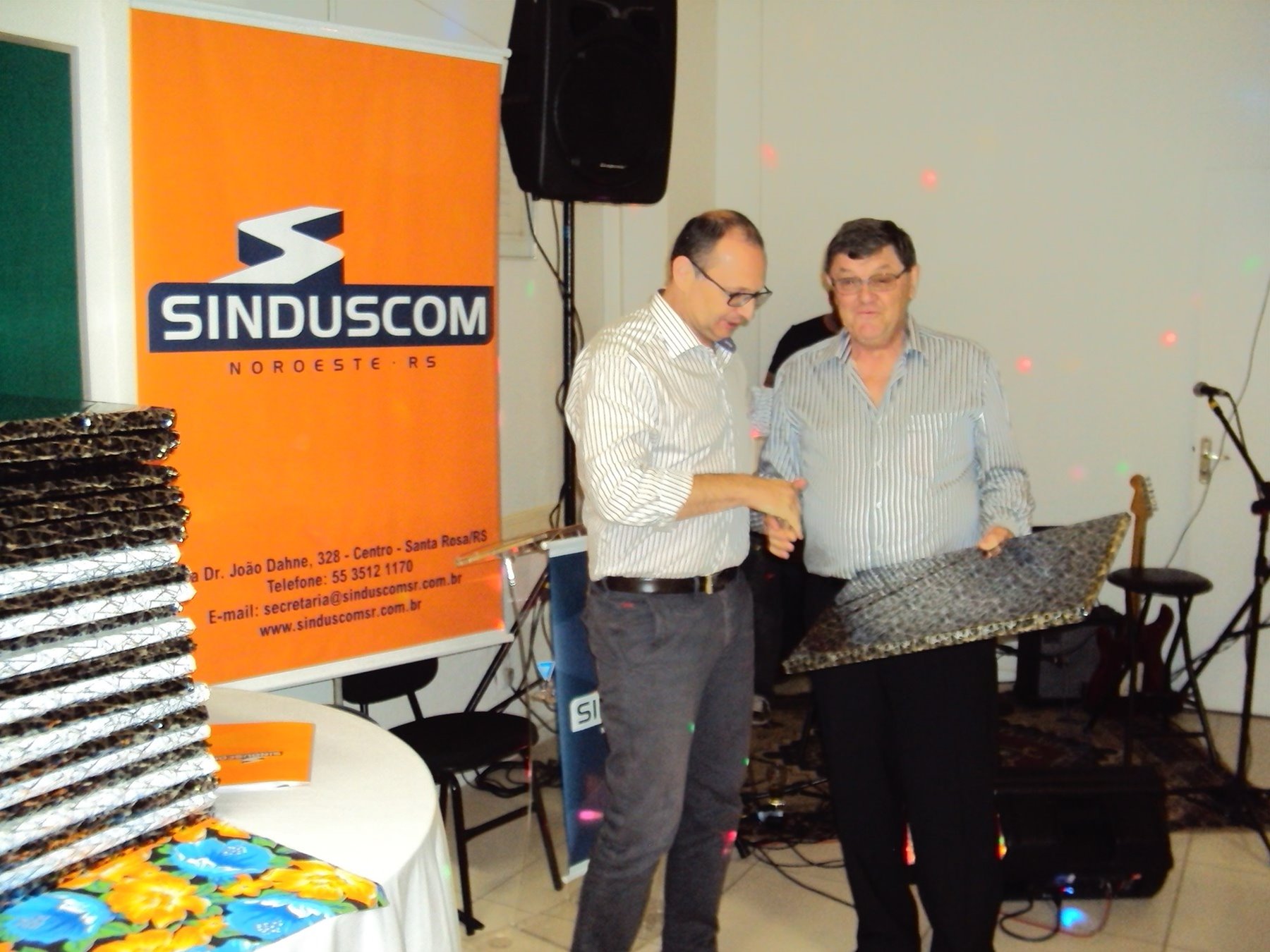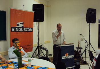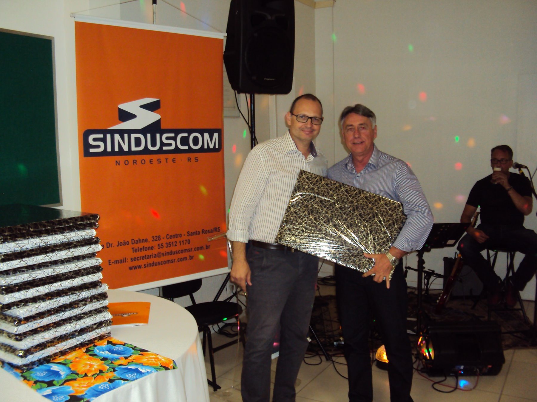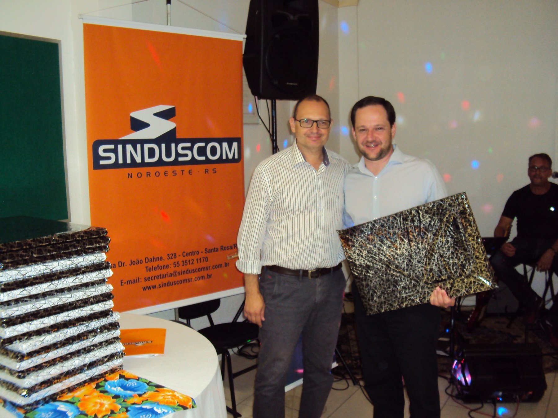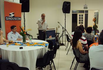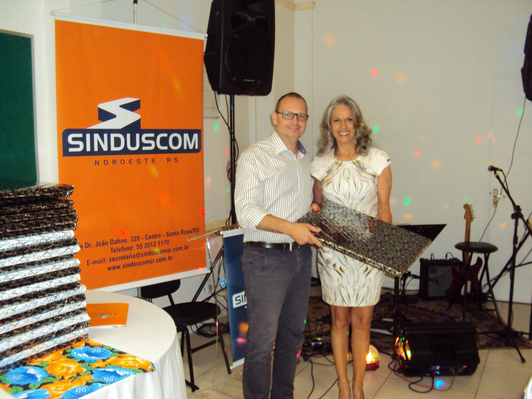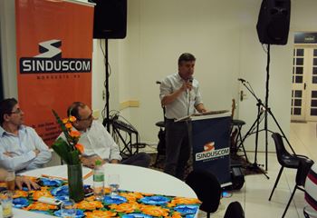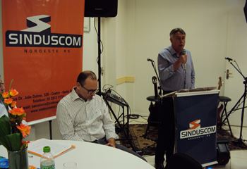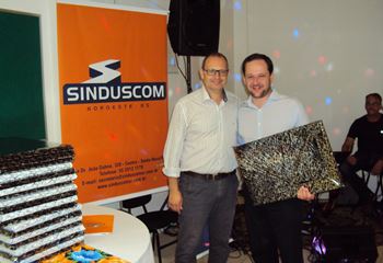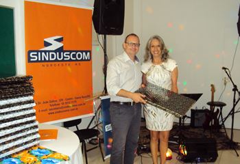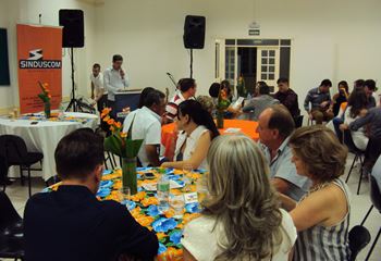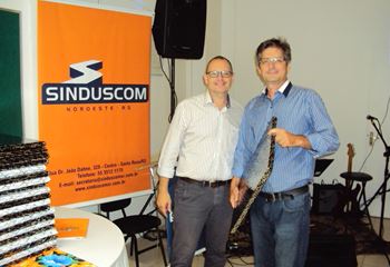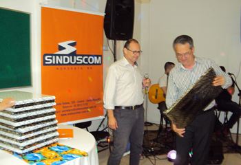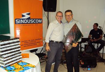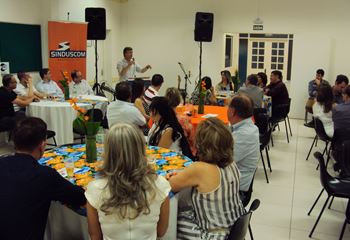 No dia 15 de dezembro de 2016, o SINDUSCOM Noroeste RS realizou seu último evento do ano. Foi uma reunião jantar de final de ano, em sua sede e com casa cheia. Na oportunidade o presidente George Aléssio fez um relato das principais ações desenvolvidas durante o ano, com destaque nas parcerias e união com as demais entidades, que atuam em prol do desenvolvimento de Santa Rosa e região, como a INDUMÓVEIS, AGÊNCIA DE DESENVOLVIMENTO, ACISAP e APEA.SR. Os presidentes destas estavam presentes e também se manifestaram, respectivamente: Ademir Meinerz, Artur Lorentz, Cicilia Liberal Paes e Rodrigo Meinerz. As manifestações foram unanimes em relação ao cenário econômico brasileiro, em que as empresas, apesar das dificuldades, sobreviveram e com a esperança de ter o ano de 2017 melhor. Algumas das ações lembradas foram: Programa de Saúde e Segurança do Trabalho com o SESI; Seminário sobre PPCI´s; DNCS - Dia Nacional da Construção Social; Encontro com Ministro; Encontro e Demandas aos candidatos a Prefeito de Santa Rosa; Apoio e participação no CONECTA; Representação ativa nos Conselhos Municipais; Realização das Reuniões mensais e as Parcerias e apoios constante das entidades. O presidente Aléssio, também citou e agadeceu os empresários de Santa Ângelo (Toscani e Parnoff), que estavam presentes e informou sobre a Extensão de Base, do Sindicato, que o processo avançou e aguarda-se a publicação por parte do Ministério do Trabalho. Durante o evento os associados presentes, bem descontraídos, participaram do jantar, receberam um mimo e assistiram uma apresentação artistica.