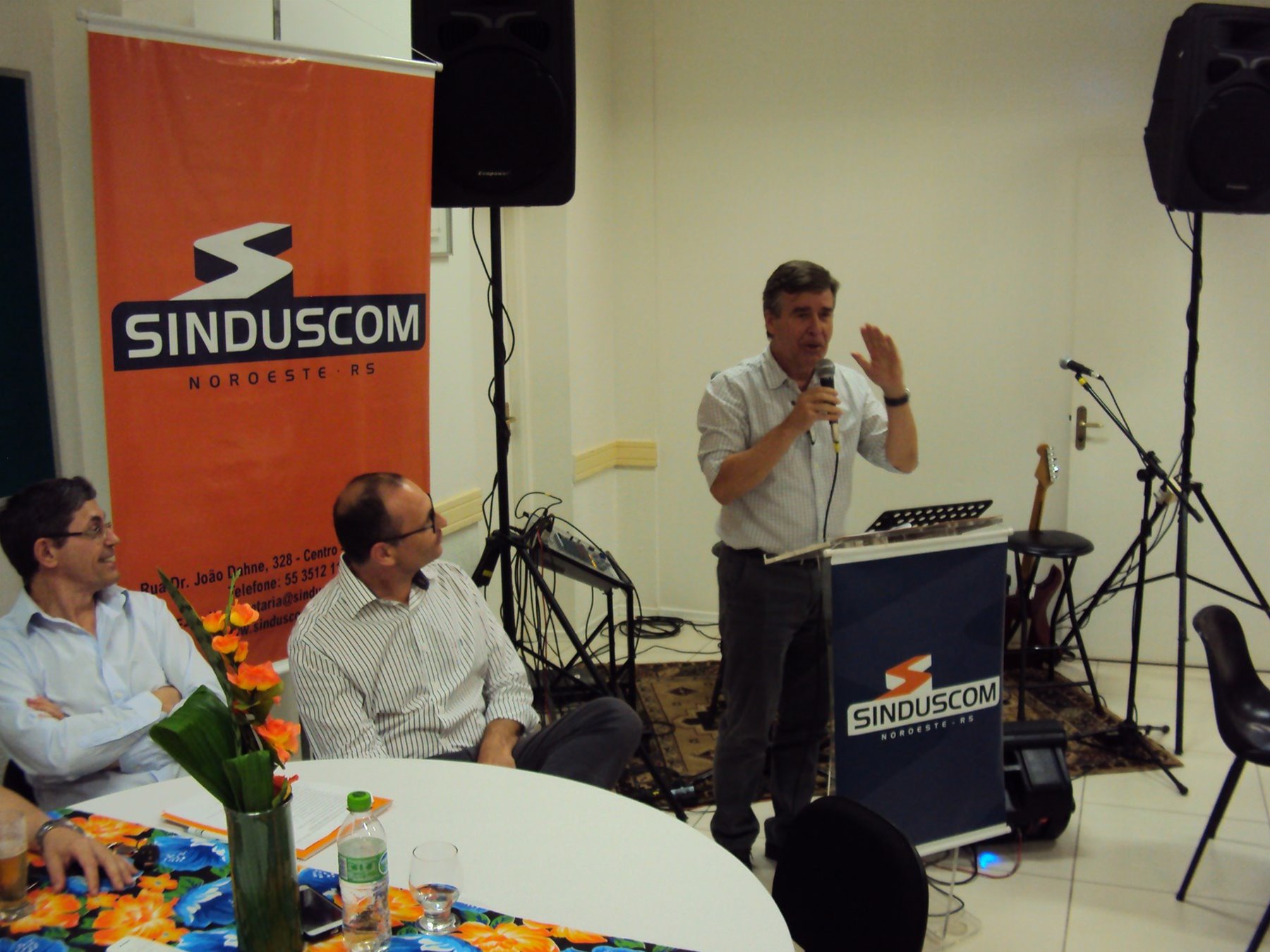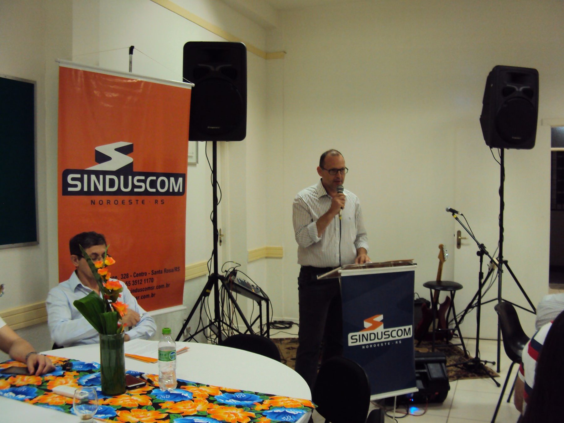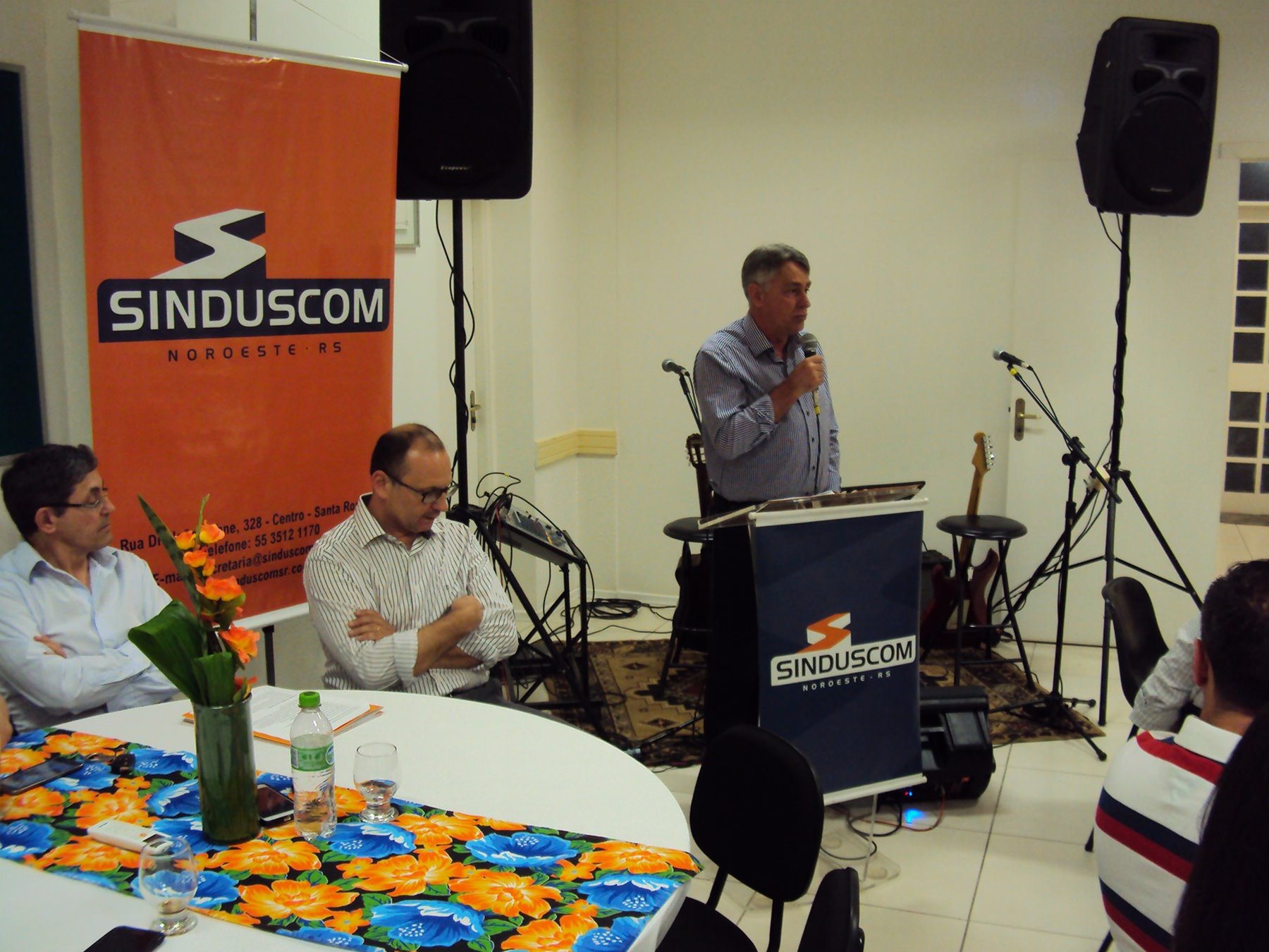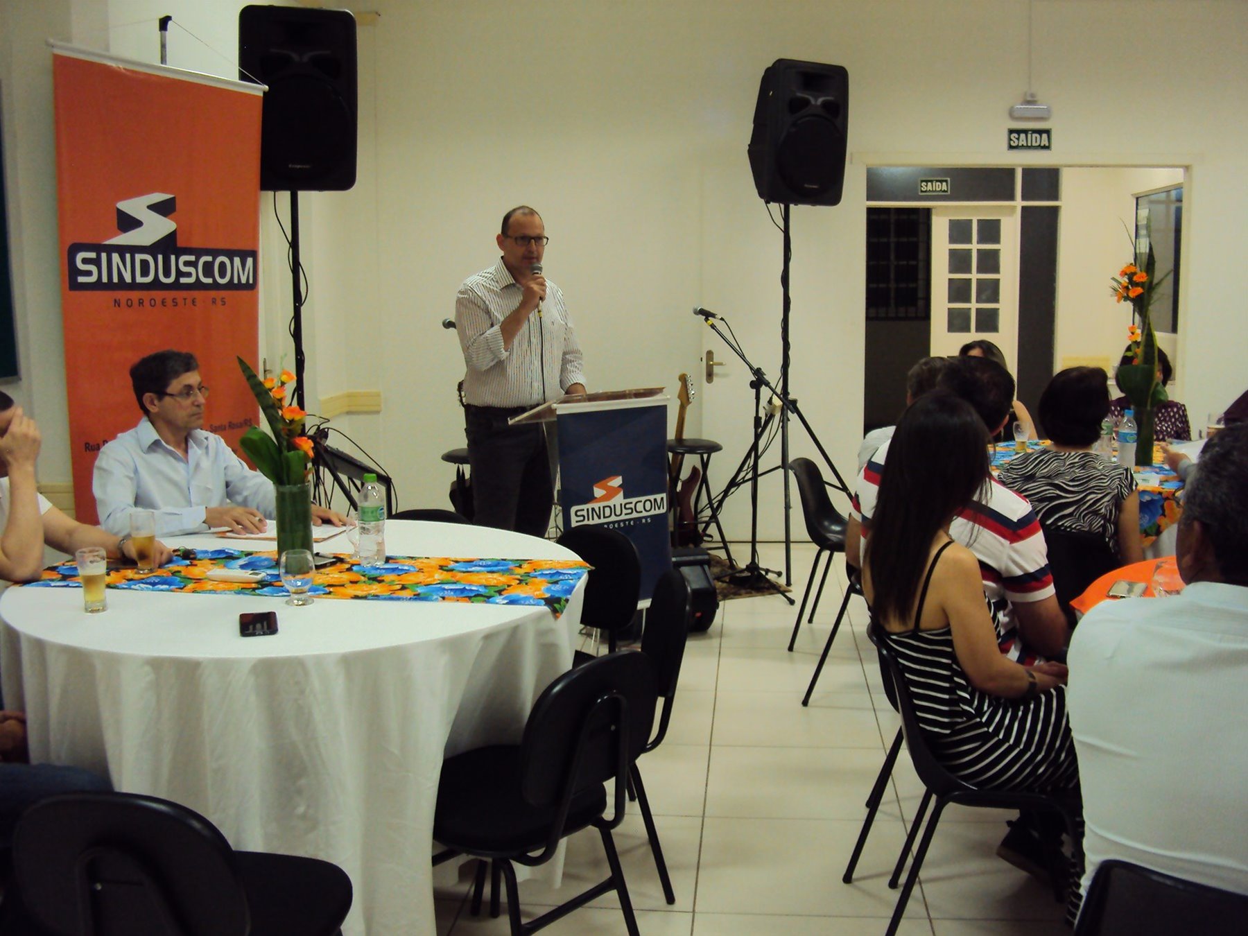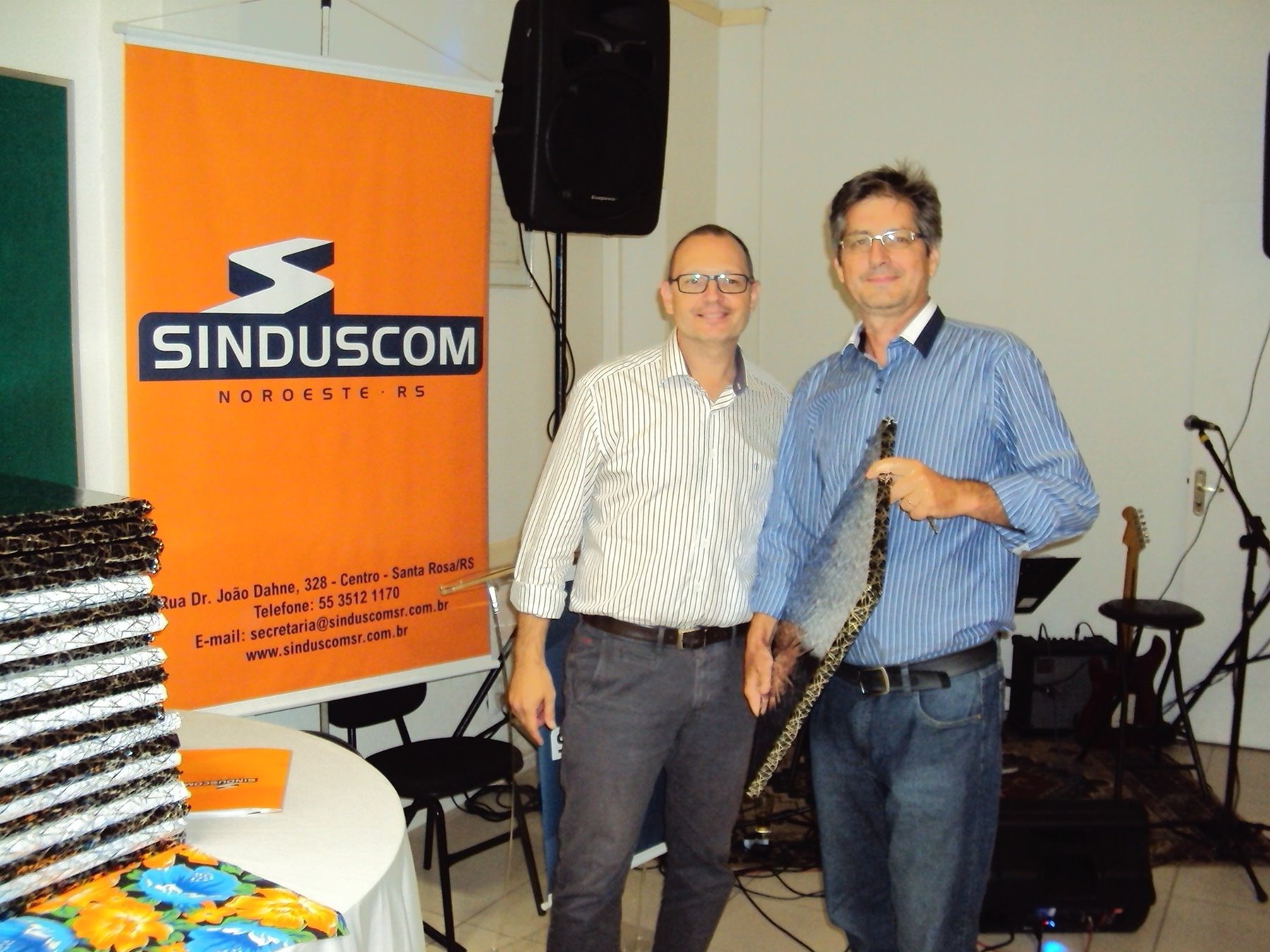 No dia 15 de dezembro de 2016, o SINDUSCOM Noroeste RS realizou seu último evento do ano. Foi uma reunião jantar de final de ano, em sua sede e com casa cheia. Na oportunidade o presidente George Aléssio fez um relato das principais ações desenvolvidas durante o ano, com destaque nas parcerias e união com as demais entidades, que atuam em prol do desenvolvimento de Santa Rosa e região, como a INDUMÓVEIS, AGÊNCIA DE DESENVOLVIMENTO, ACISAP e APEA.SR. Os presidentes destas estavam presentes e também se manifestaram, respectivamente: Ademir Meinerz, Artur Lorentz, Cicilia Liberal Paes e Rodrigo Meinerz. As manifestações foram unanimes em relação ao cenário econômico brasileiro, em que as empresas, apesar das dificuldades, sobreviveram e com a esperança de ter o ano de 2017 melhor. Algumas das ações lembradas foram: Programa de Saúde e Segurança do Trabalho com o SESI; Seminário sobre PPCI´s; DNCS - Dia Nacional da Construção Social; Encontro com Ministro; Encontro e Demandas aos candidatos a Prefeito de Santa Rosa; Apoio e participação no CONECTA; Representação ativa nos Conselhos Municipais; Realização das Reuniões mensais e as Parcerias e apoios constante das entidades. O presidente Aléssio, também citou e agadeceu os empresários de Santa Ângelo (Toscani e Parnoff), que estavam presentes e informou sobre a Extensão de Base, do Sindicato, que o processo avançou e aguarda-se a publicação por parte do Ministério do Trabalho. Durante o evento os associados presentes, bem descontraídos, participaram do jantar, receberam um mimo e assistiram uma apresentação artistica.