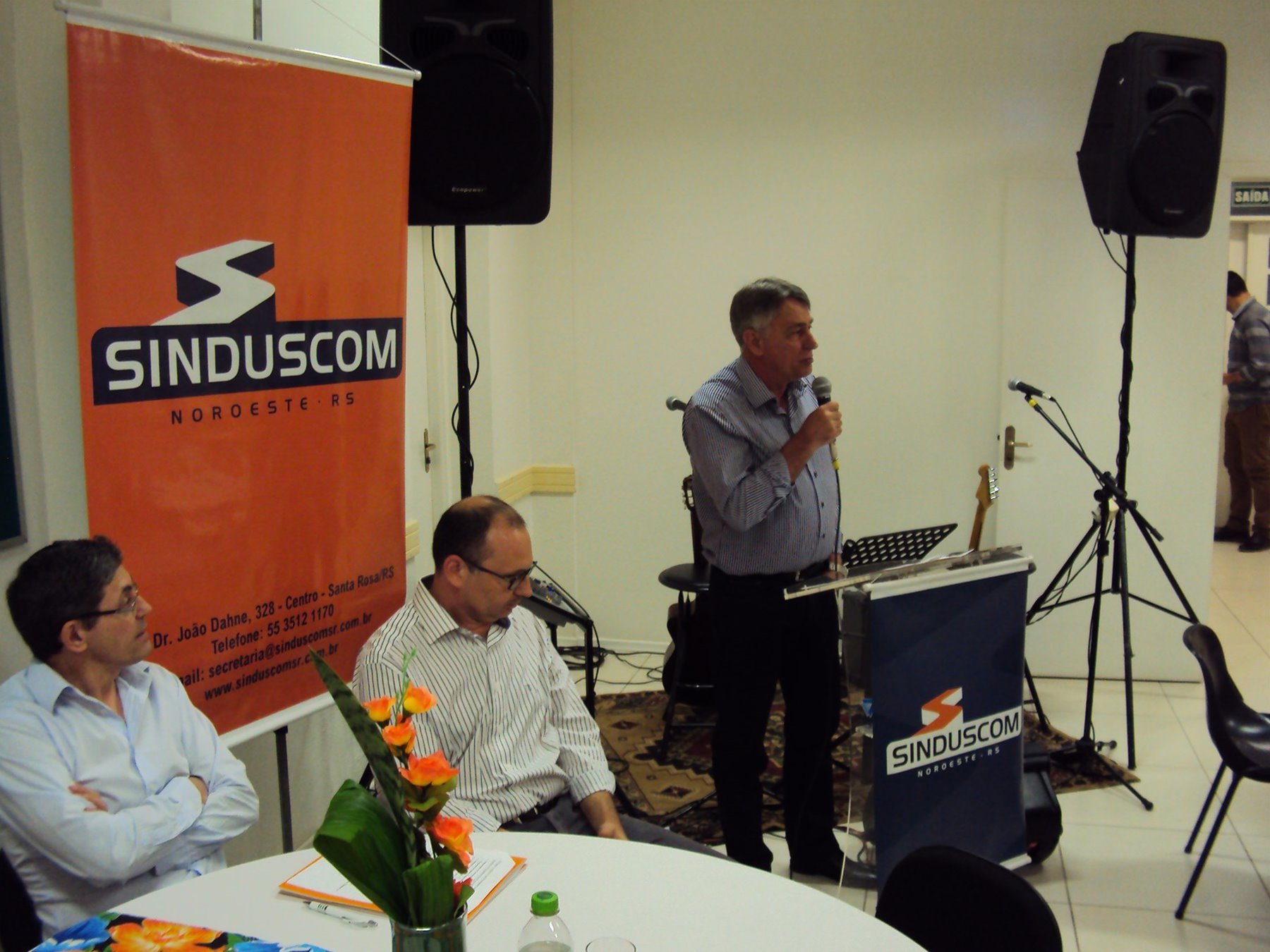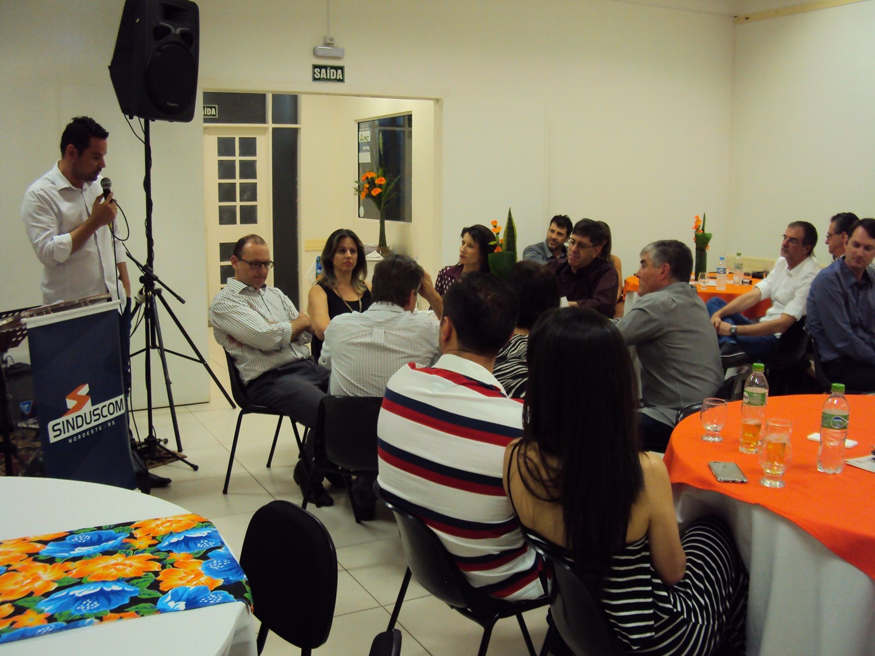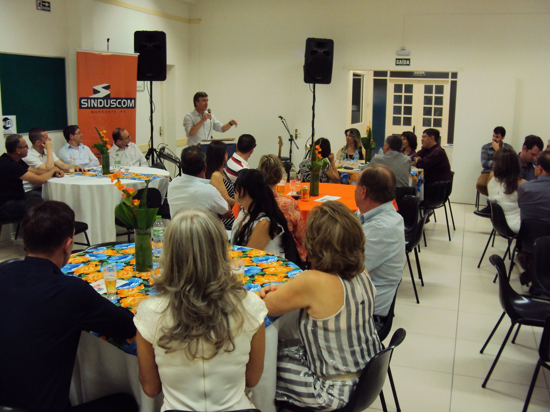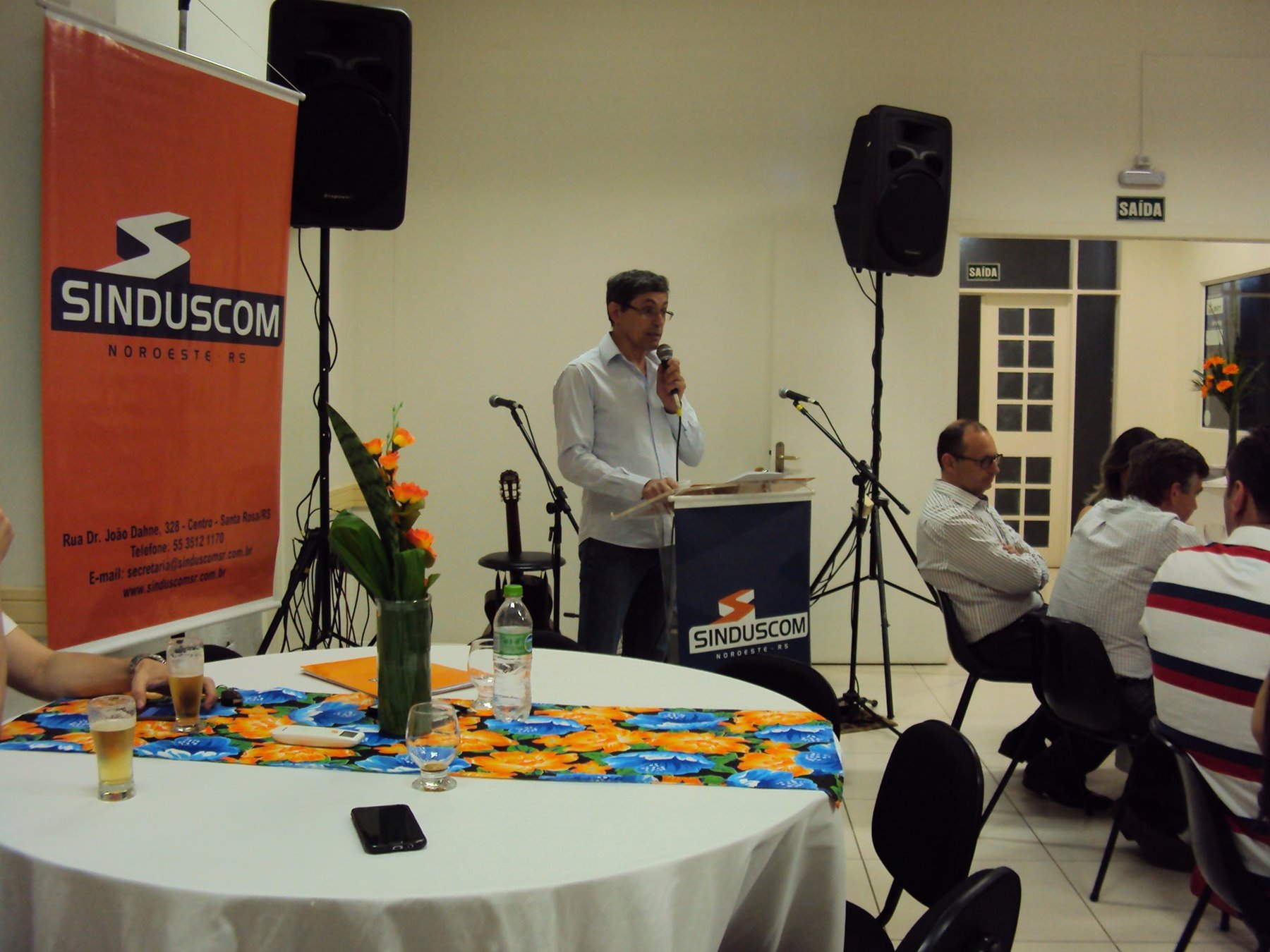 No dia 15 de dezembro de 2016, o SINDUSCOM Noroeste RS realizou seu último evento do ano. Foi uma reunião jantar de final de ano, em sua sede e com casa cheia. Na oportunidade o presidente George Aléssio fez um relato das principais ações desenvolvidas durante o ano, com destaque nas parcerias e união com as demais entidades, que atuam em prol do desenvolvimento de Santa Rosa e região, como a INDUMÓVEIS, AGÊNCIA DE DESENVOLVIMENTO, ACISAP e APEA.SR. Os presidentes destas estavam presentes e também se manifestaram, respectivamente: Ademir Meinerz, Artur Lorentz, Cicilia Liberal Paes e Rodrigo Meinerz. As manifestações foram unanimes em relação ao cenário econômico brasileiro, em que as empresas, apesar das dificuldades, sobreviveram e com a esperança de ter o ano de 2017 melhor. Algumas das ações lembradas foram: Programa de Saúde e Segurança do Trabalho com o SESI; Seminário sobre PPCI´s; DNCS - Dia Nacional da Construção Social; Encontro com Ministro; Encontro e Demandas aos candidatos a Prefeito de Santa Rosa; Apoio e participação no CONECTA; Representação ativa nos Conselhos Municipais; Realização das Reuniões mensais e as Parcerias e apoios constante das entidades. O presidente Aléssio, também citou e agadeceu os empresários de Santa Ângelo (Toscani e Parnoff), que estavam presentes e informou sobre a Extensão de Base, do Sindicato, que o processo avançou e aguarda-se a publicação por parte do Ministério do Trabalho. Durante o evento os associados presentes, bem descontraídos, participaram do jantar, receberam um mimo e assistiram uma apresentação artistica.