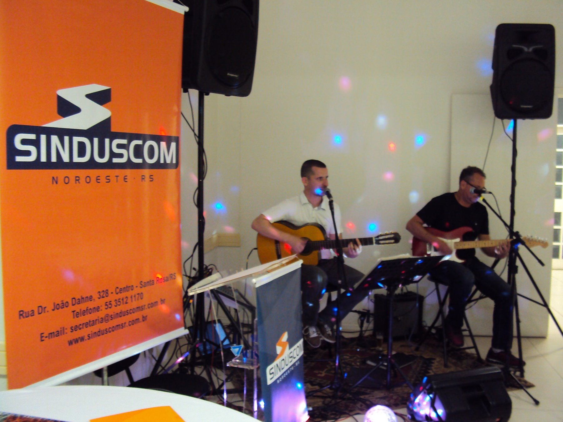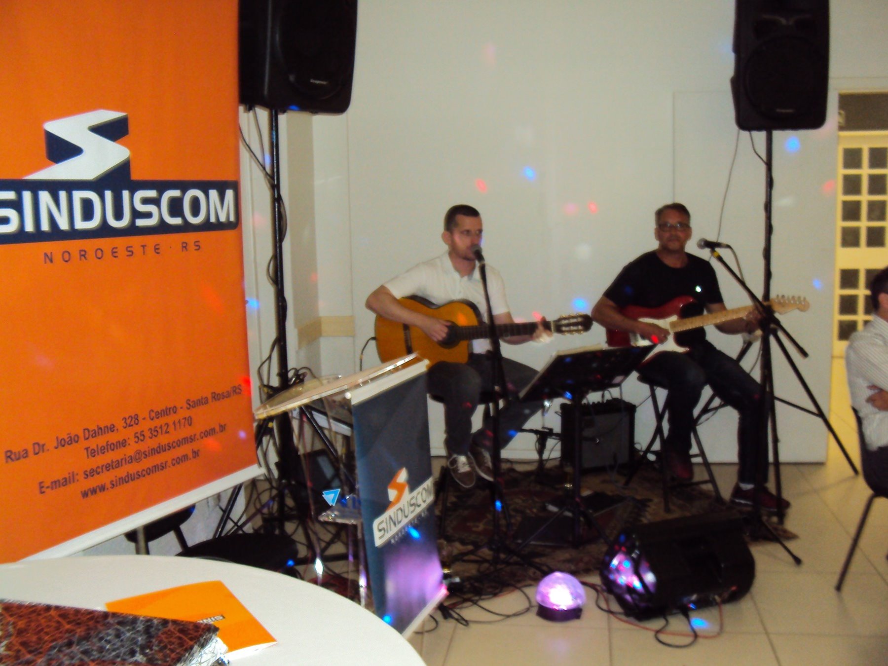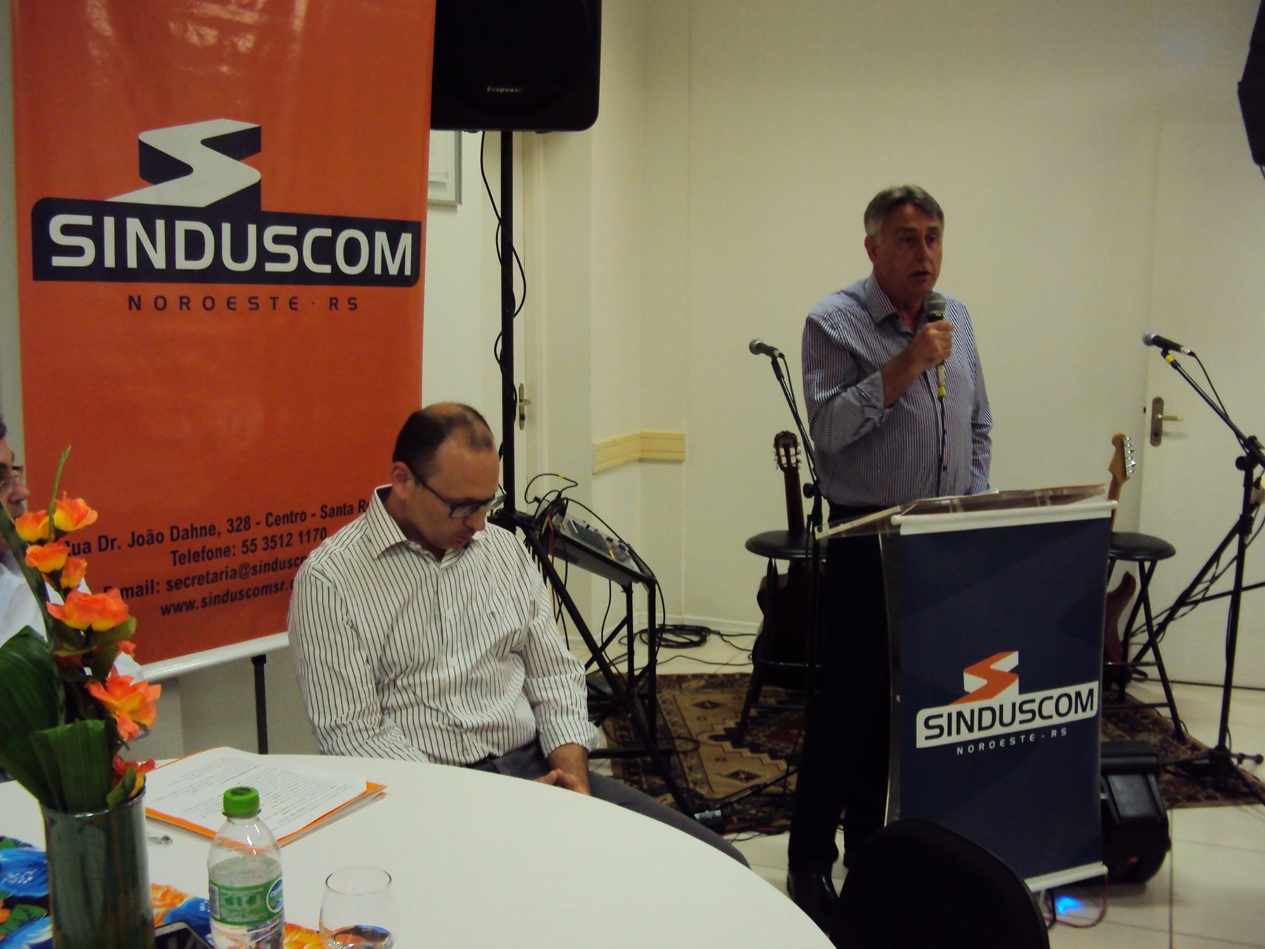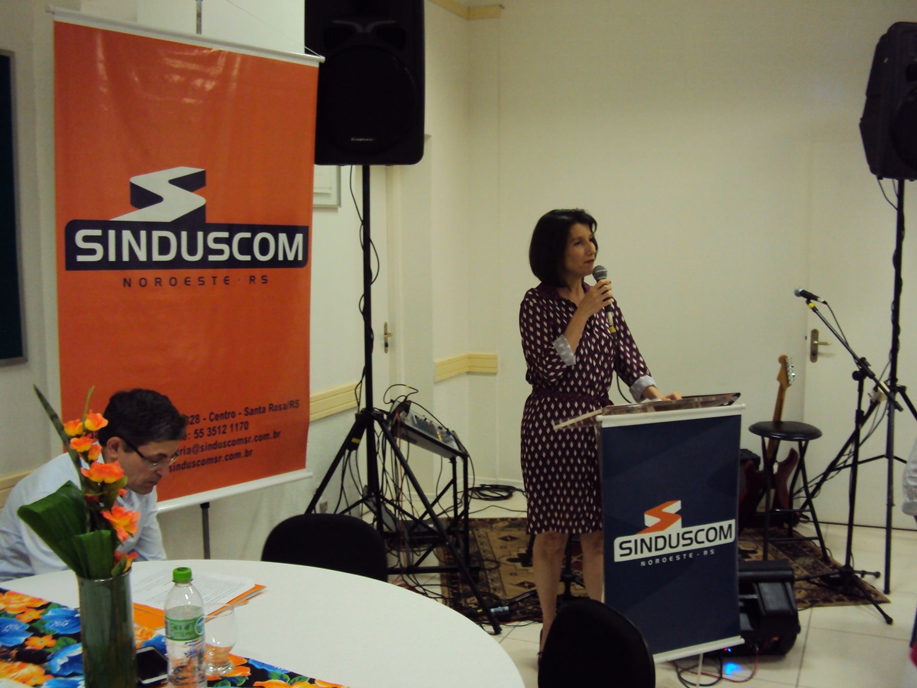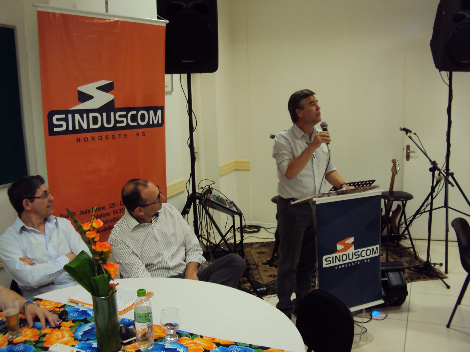 No dia 15 de dezembro de 2016, o SINDUSCOM Noroeste RS realizou seu último evento do ano. Foi uma reunião jantar de final de ano, em sua sede e com casa cheia. Na oportunidade o presidente George Aléssio fez um relato das principais ações desenvolvidas durante o ano, com destaque nas parcerias e união com as demais entidades, que atuam em prol do desenvolvimento de Santa Rosa e região, como a INDUMÓVEIS, AGÊNCIA DE DESENVOLVIMENTO, ACISAP e APEA.SR. Os presidentes destas estavam presentes e também se manifestaram, respectivamente: Ademir Meinerz, Artur Lorentz, Cicilia Liberal Paes e Rodrigo Meinerz. As manifestações foram unanimes em relação ao cenário econômico brasileiro, em que as empresas, apesar das dificuldades, sobreviveram e com a esperança de ter o ano de 2017 melhor. Algumas das ações lembradas foram: Programa de Saúde e Segurança do Trabalho com o SESI; Seminário sobre PPCI´s; DNCS - Dia Nacional da Construção Social; Encontro com Ministro; Encontro e Demandas aos candidatos a Prefeito de Santa Rosa; Apoio e participação no CONECTA; Representação ativa nos Conselhos Municipais; Realização das Reuniões mensais e as Parcerias e apoios constante das entidades. O presidente Aléssio, também citou e agadeceu os empresários de Santa Ângelo (Toscani e Parnoff), que estavam presentes e informou sobre a Extensão de Base, do Sindicato, que o processo avançou e aguarda-se a publicação por parte do Ministério do Trabalho. Durante o evento os associados presentes, bem descontraídos, participaram do jantar, receberam um mimo e assistiram uma apresentação artistica.