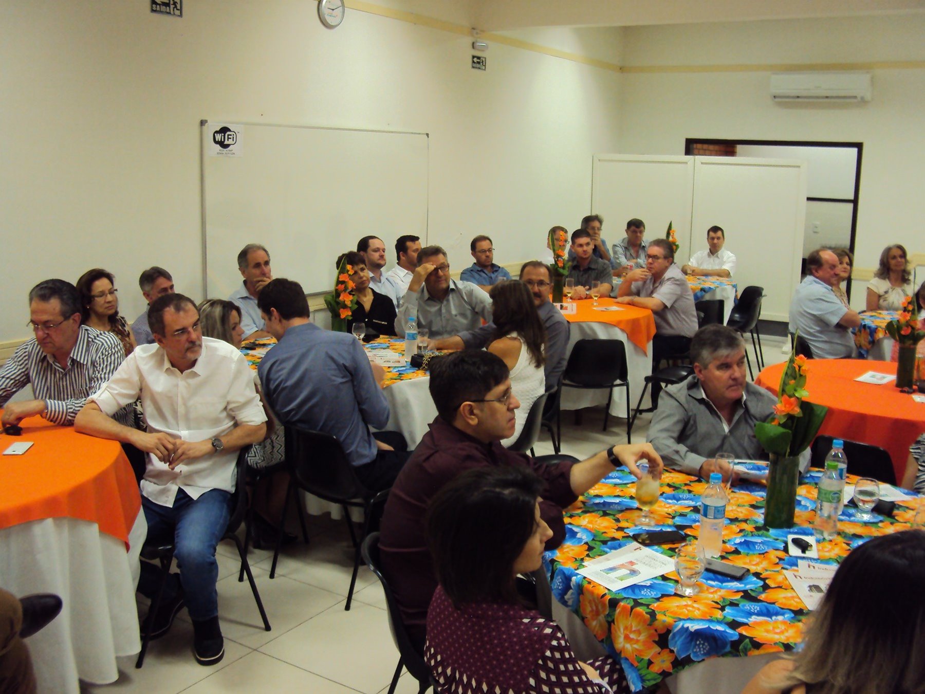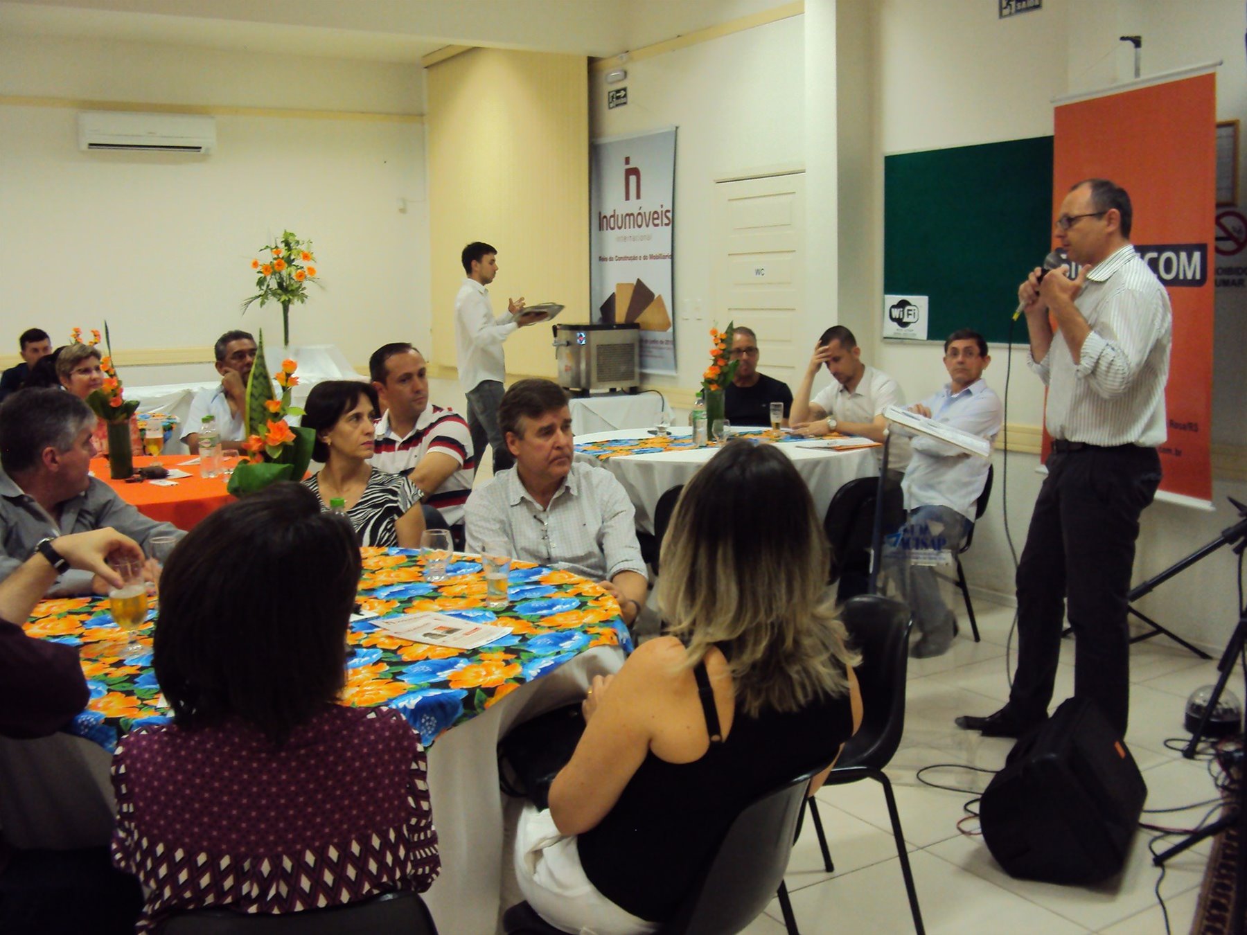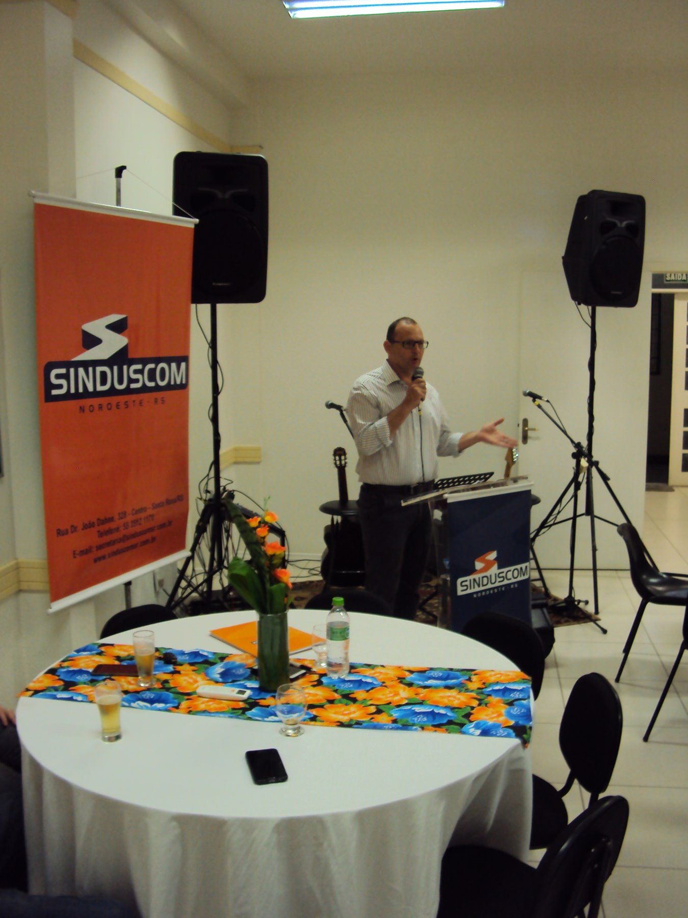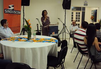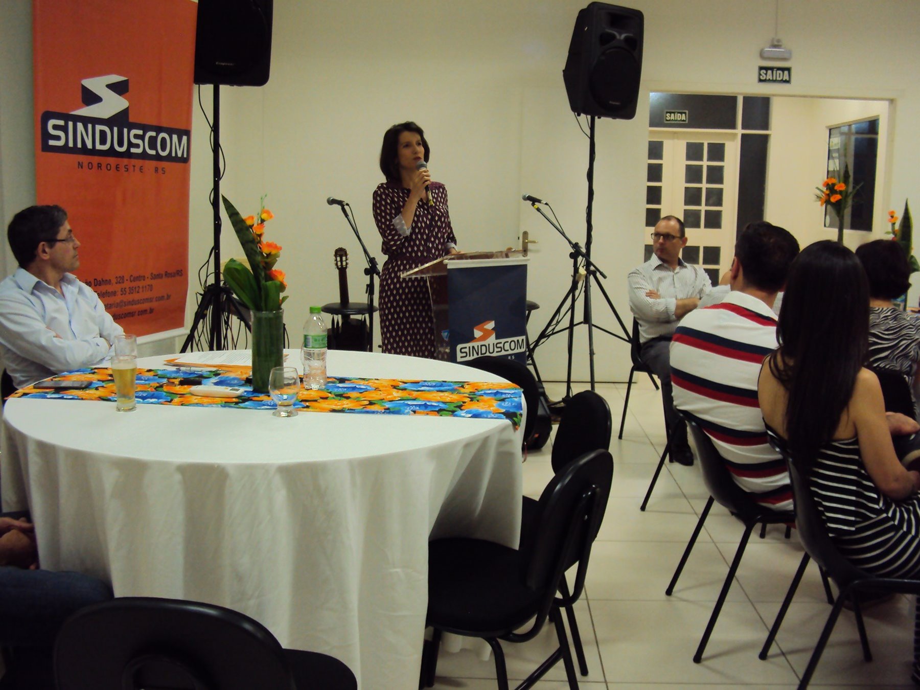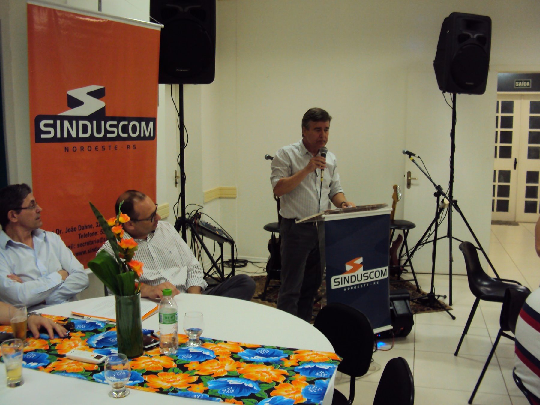 No dia 15 de dezembro de 2016, o SINDUSCOM Noroeste RS realizou seu último evento do ano. Foi uma reunião jantar de final de ano, em sua sede e com casa cheia. Na oportunidade o presidente George Aléssio fez um relato das principais ações desenvolvidas durante o ano, com destaque nas parcerias e união com as demais entidades, que atuam em prol do desenvolvimento de Santa Rosa e região, como a INDUMÓVEIS, AGÊNCIA DE DESENVOLVIMENTO, ACISAP e APEA.SR. Os presidentes destas estavam presentes e também se manifestaram, respectivamente: Ademir Meinerz, Artur Lorentz, Cicilia Liberal Paes e Rodrigo Meinerz. As manifestações foram unanimes em relação ao cenário econômico brasileiro, em que as empresas, apesar das dificuldades, sobreviveram e com a esperança de ter o ano de 2017 melhor. Algumas das ações lembradas foram: Programa de Saúde e Segurança do Trabalho com o SESI; Seminário sobre PPCI´s; DNCS - Dia Nacional da Construção Social; Encontro com Ministro; Encontro e Demandas aos candidatos a Prefeito de Santa Rosa; Apoio e participação no CONECTA; Representação ativa nos Conselhos Municipais; Realização das Reuniões mensais e as Parcerias e apoios constante das entidades. O presidente Aléssio, também citou e agadeceu os empresários de Santa Ângelo (Toscani e Parnoff), que estavam presentes e informou sobre a Extensão de Base, do Sindicato, que o processo avançou e aguarda-se a publicação por parte do Ministério do Trabalho. Durante o evento os associados presentes, bem descontraídos, participaram do jantar, receberam um mimo e assistiram uma apresentação artistica.