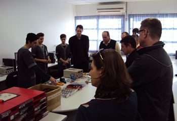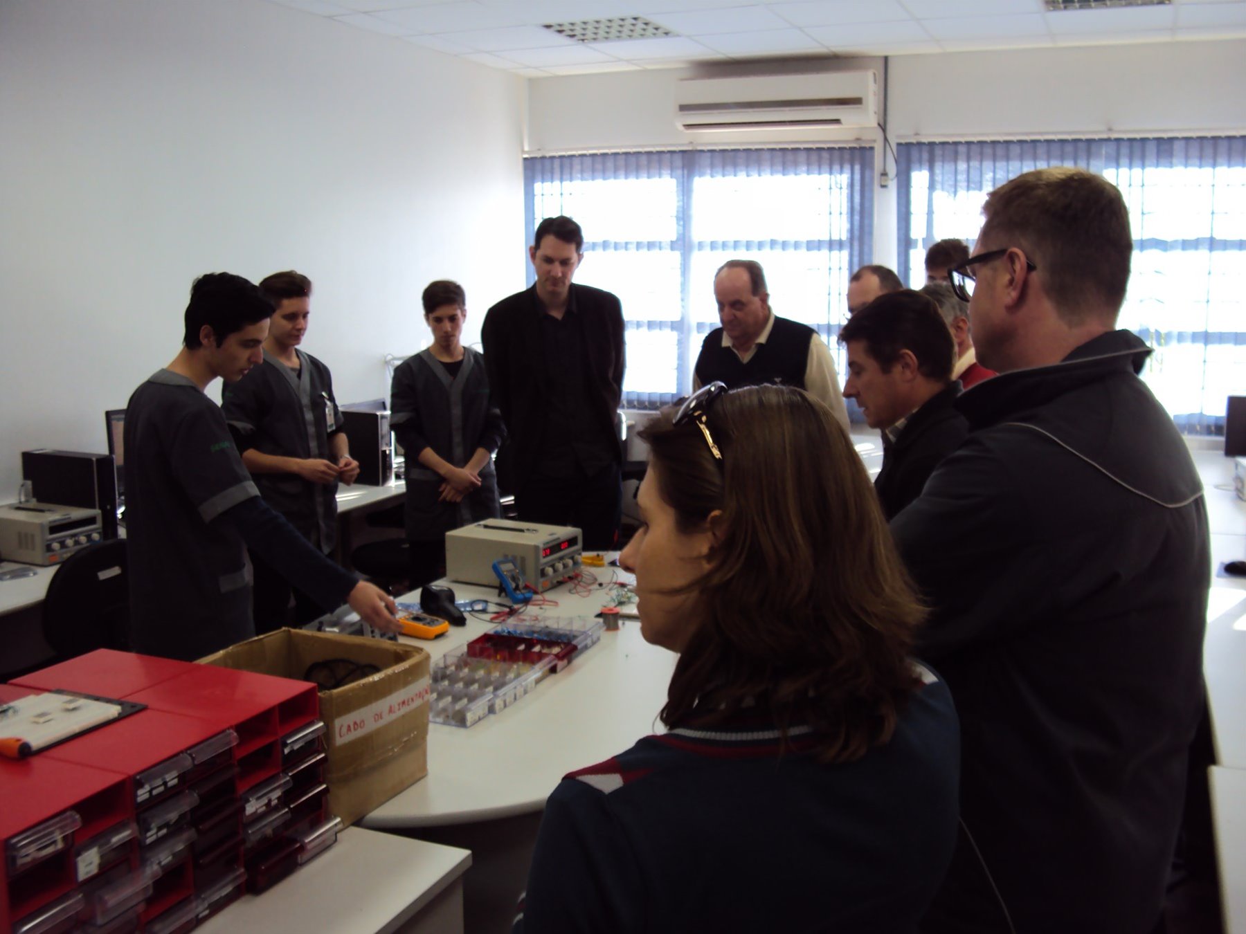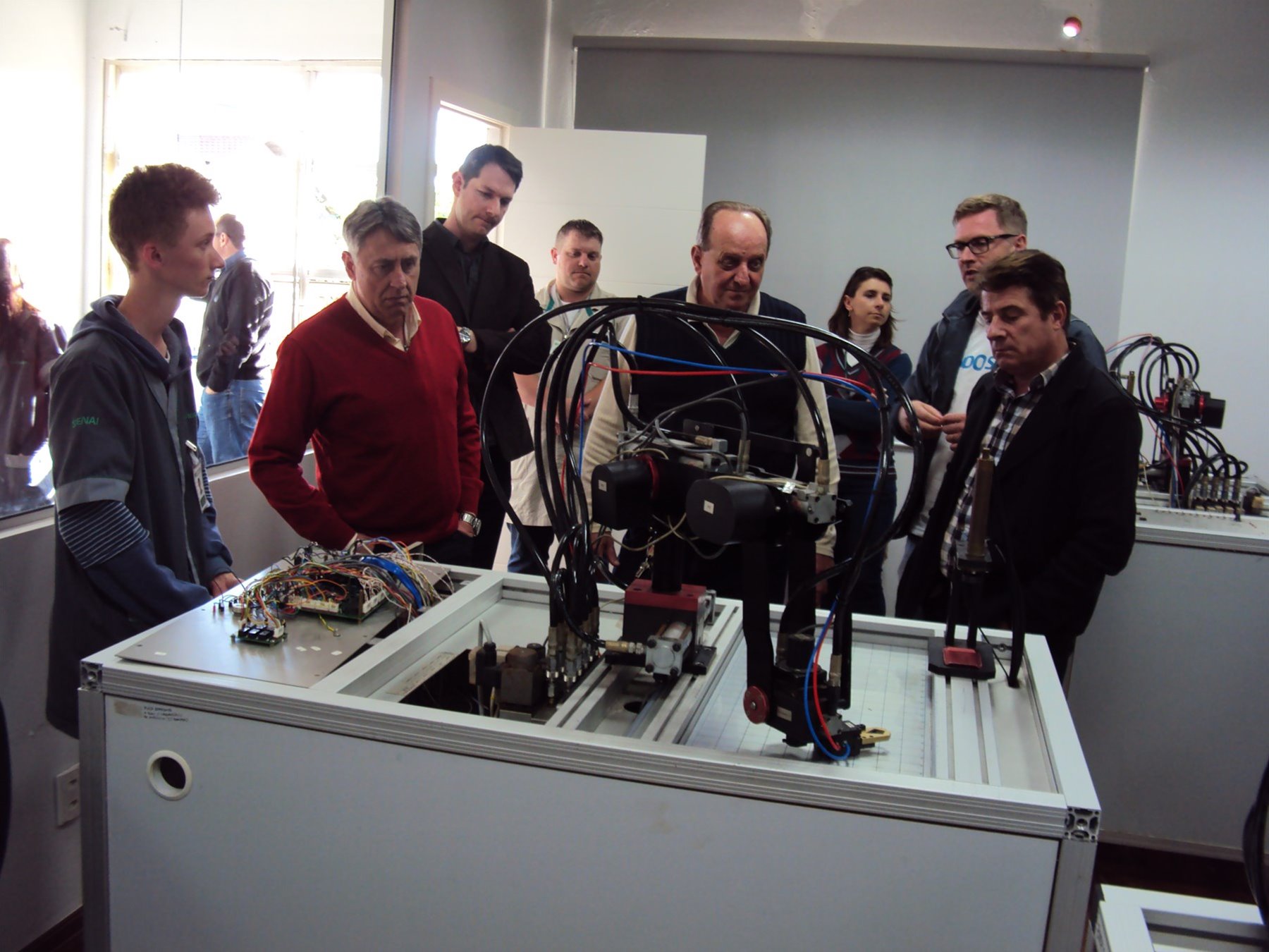 As comitivas das duas entidades foram recepcionadas pela equipe do SENAI, coordenada pelo diretor Alexandre Stein, que na oportunidade visitaram as mostras tecnológicas e os laboratórios que simulam o dia a dia da indústria. Foram dois dias de apresentações no SENAI, que esteve de portas abertas aos interessados para conhecer um mundo de oportunidades, disse o diretor Alexandre.